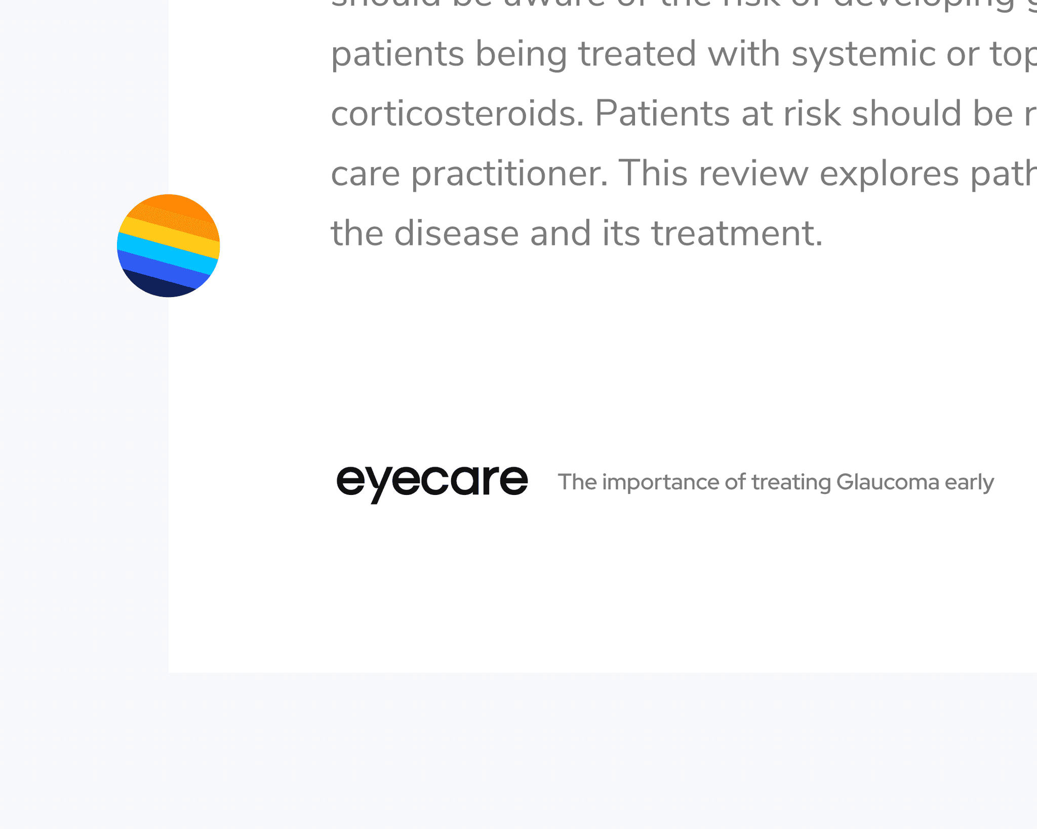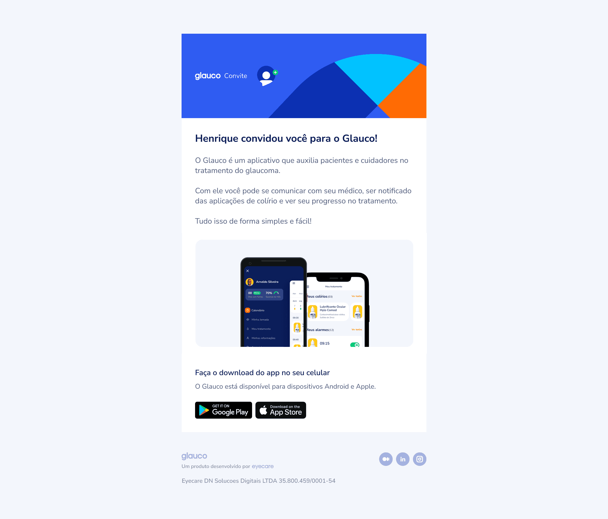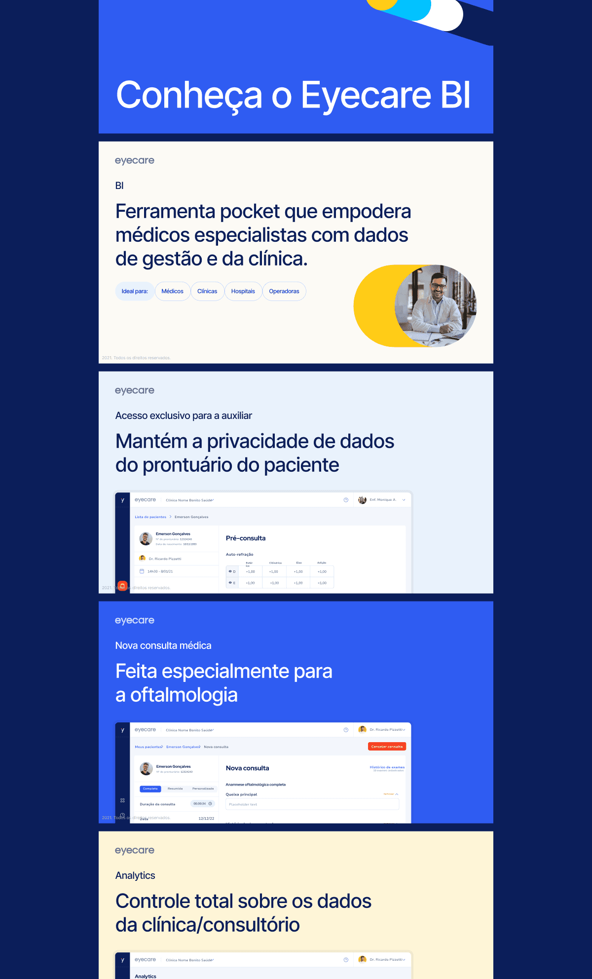 Glauco, Eyecare's first product, is an app for glaucoma patients to track their treatment and connect with doctors, leading to better outcomes. It won a Silver Medal at the Brazilian Design Awards upon launch.